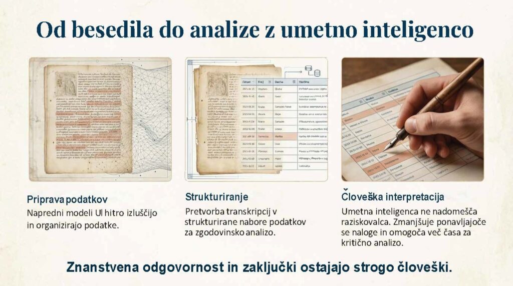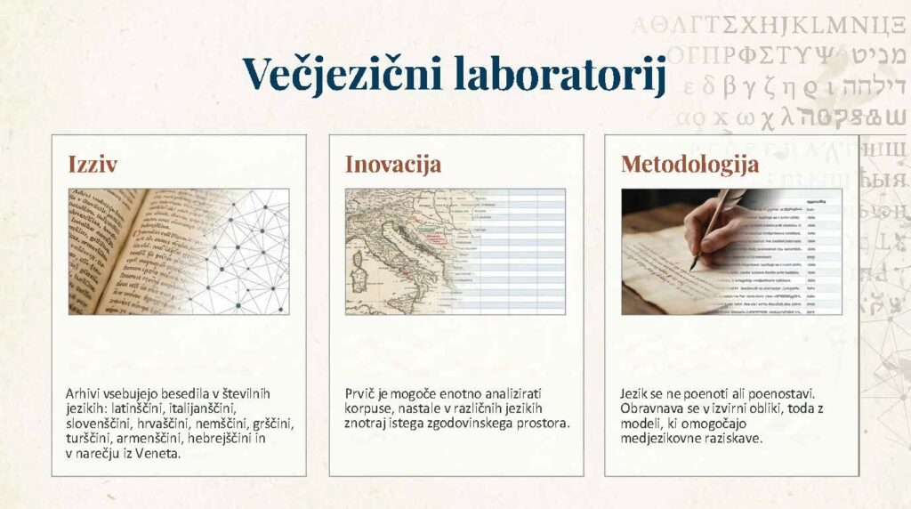 Naš cilj je, da prihranimo čas, namenjen transkripciji in obdelavi dokumentov, ter se posvetimo raziskavam in interpretaciji. Interdisciplinarni laboratorij razvija digitalne rešitve, ki pospešujejo znanstveno delo, pri čemer tehnologija ne nadomešča človeka, ampak ga podpira.