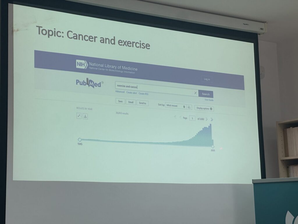 Dr. Damir Zubac, koordinator bilateralnega projekta med Univerzo v Kölnu in ZRS Koper, je v sredo, 15. aprila, v knjižnici na sedežu ZRS Koper, vodil delavnico na temo vloge vadbe pri obvladovanju kronične utrujenosti med protirakavo imunoterapijo.