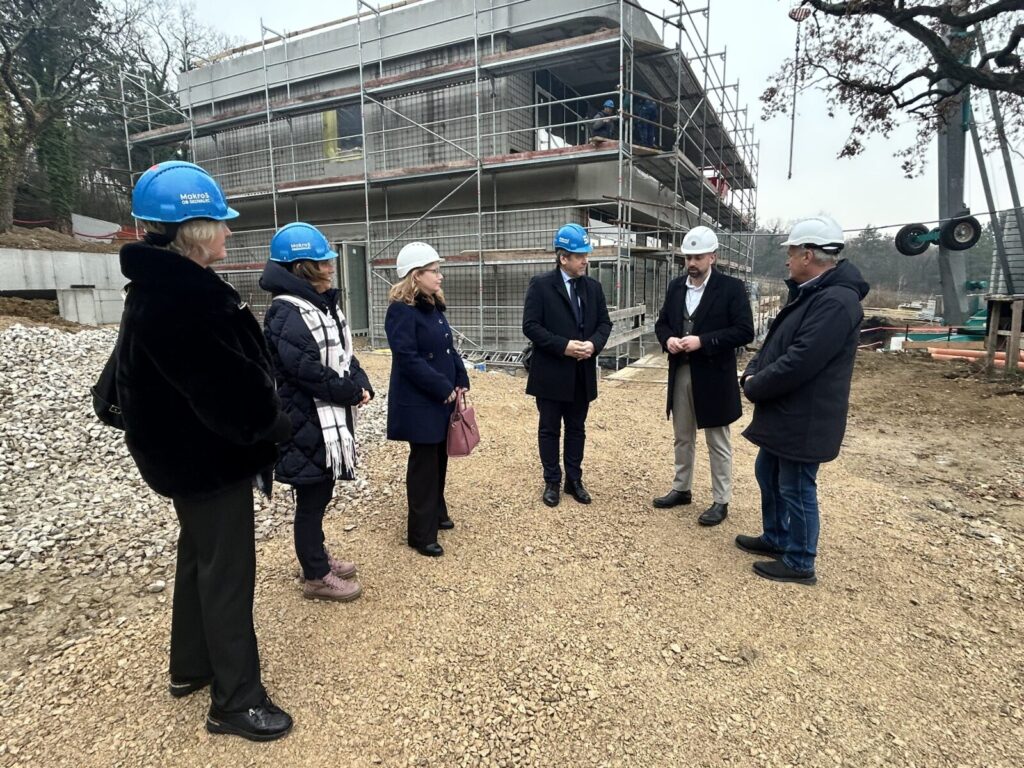 Minister za visoko šolstvo, znanost in inovacije dr. Igor Papič si je danes v okviru vladnega obiska v Obalno-kraški regiji ogledal napredek pri gradnji Kompetenčnega centra za oljkarstvo in druge mediteranske kulture na Plavjah. Potek gradnje sta si ogledali tudi poslanka Gibanja Svobode Andreja Živic in podžupanja Mestne občine Koper Mateja Hrvatin Kozlovič. Goste je sprejel namestnik direktorja Znanstveno-raziskovalnega središča (ZRS) Koper dr. Tilen Glavina.