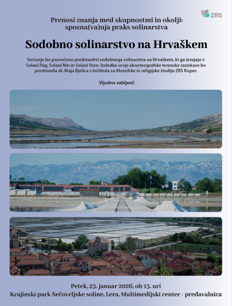 Znanstveno-raziskovalno središče (ZRS) Koper je v okviru projektov Konzorcij za prenos znanja – KTO3 in temeljnega raziskovalnega projekta »Zrno soli, kristaliziranje sobivanja: solinarstvo kot izkustvena okoljska modrost organiziralo dogodek z naslovom: Prenosi znanja med skupnostmi in okolji: spozna(va)nja praks solinarstva – Sodobno solinarstvo na Hrvaškem.