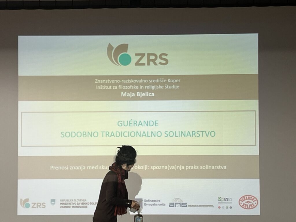 Na dogodku je raziskovalka dr. Maja Bjelica predstavila svoja spoznanja in ugotovitve s terenskega dela ter izsledke primerjalne ekoetnografske raziskave v solinah Guérande na zahodu Francije, kjer se je seznanila z organizacijo ter sodobnim izvajanjem tradicionalnega solinarstva.
