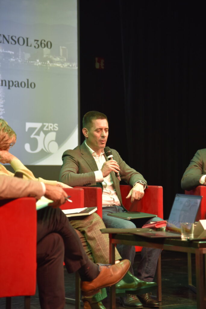Petar Vujović, član uprave Intesa Sanpaolo Bank, je predstavil svoj pogled na to, kako še okrepiti sodelovanje med znanostjo in gospodarstvom za uspešno prihodnost našega kraja. Skozi poslanstvo bančništva – od osnovnih nalog do bolj kompleksnega pogleda na spremembe na trgu in v procesih prestrukturiranja družb, pa tudi na spremembe v okolju skozi čas – je pojasnil, kakšno vlogo odigrajo banke: