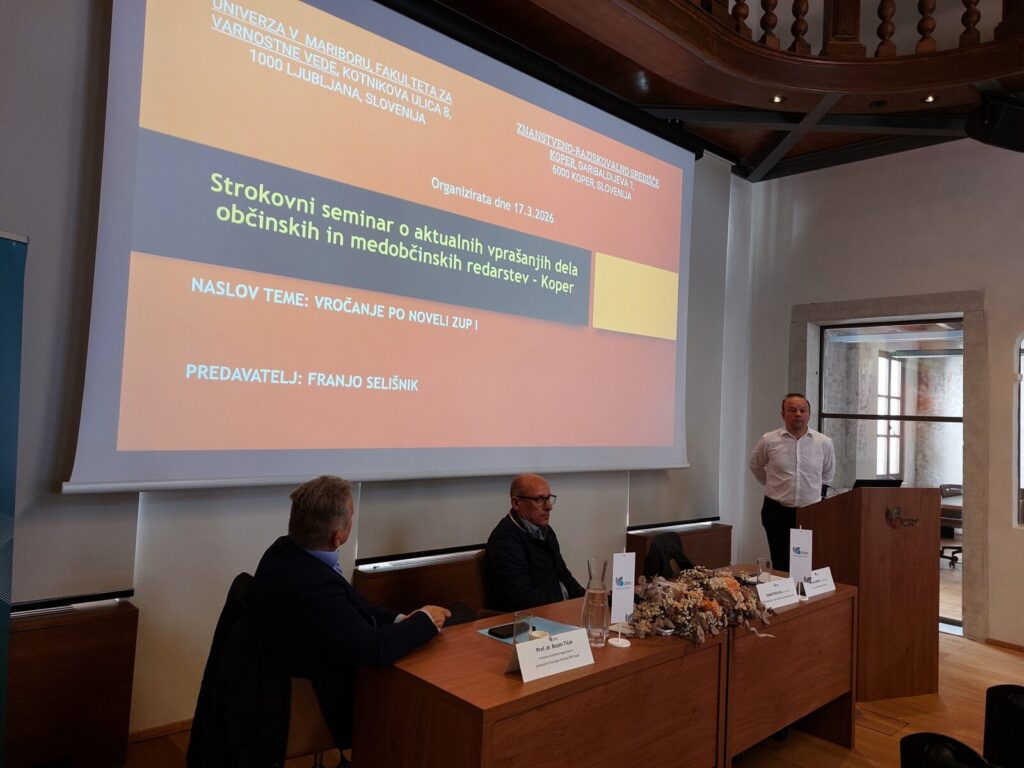 Znanstveno-raziskovalno središče (ZRS) Koper in Fakulteta za varnostne vede (FVV) Univerze v Mariboru sta v sodelovanju 17. marca 2026 v Kopru uspešno izvedli prvi strokovni seminar z naslovom »Aktualna vprašanja praktičnih vidikov dela občinskih in medobčinskih redarstev«, ki je potekal v Centru humanističnih znanosti ZRS Koper.