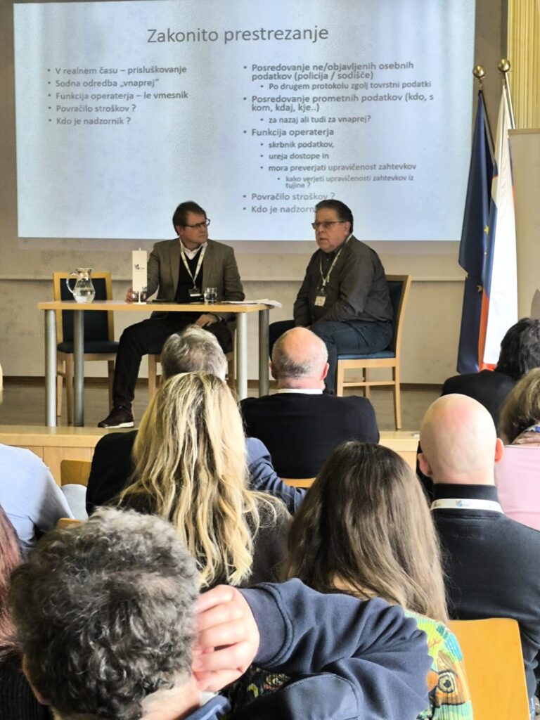 V prvem panelu, z naslovom Pridobivanje dokazov z nadzorom telekomunikacij v EU: pravni okvir in sodna praksa, sta sodelovala prof. dr. Anže Erbežnik, predstojnik katedre za kazensko pravo pri Evropski pravni fakulteti Nove Univerze in ekspert pri Evropskem parlamentu in mag. Martin Jančar, okrožni sodnik dodeljen Sodnemu svetu. Razpravo pa je moderiral dr. Flander.