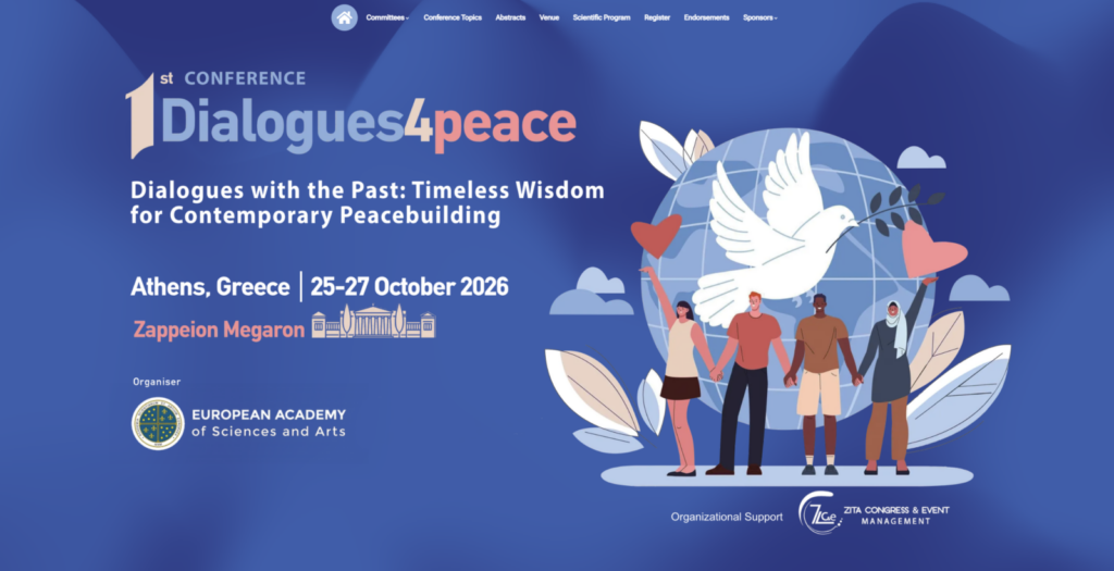 Znanstveno-raziskovalno središče (ZRS) Koper je med akademskimi podporniki prve konference Dialogi za mir – Dialogues4Peace, ki bo potekala med 25. in 27. oktobrom 2026 v Atenah v Grčiji. Konferenca se bo odvijala v znameniti neoklasični palači Zappeion Megaron.