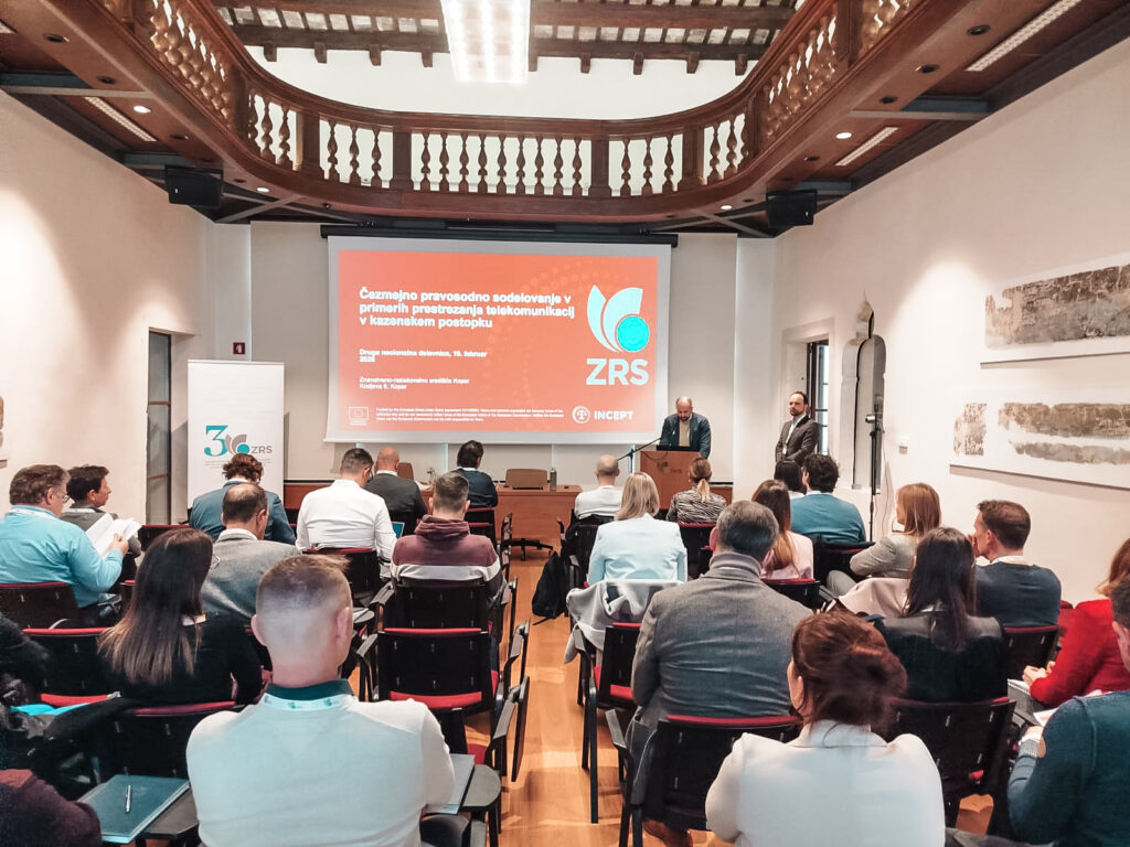 Znanstveno-raziskovalno središče Koper (ZRS Koper) je 19. februarja 2026 uspešno izvedlo drugo nacionalno delavnico z naslovom Čezmejno pravosodno sodelovanje v primerih prestrezanja telekomunikacij v kazenskem postopku v okviru projekta INCEPT. Delavnice, ki je potekala v Centru humanističnih znanosti ZRS Koper, se je udeležilo približno 40 predstavnikov pravosodja, organov pregona, odvetništva in strokovne javnosti.