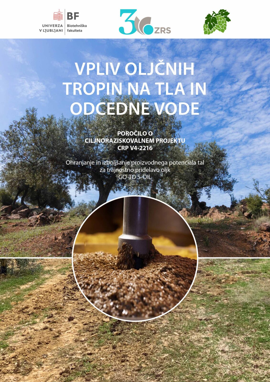 S projektom CRP V4-2216 Ohranjanje in izboljšanje proizvodnega potenciala tal za trajnostno pridelavo oljk (GO-TO S-OIL) smo želeli ovrednotiti neposredni učinek, ki ga imata čas in način uporabe oljčnih tropin, pridelanih v slovenskih oljarnah, na stanje tal, talno vodo, prehrano rastlin. Na območju slovenske Istre v oljčniku sorte ˈItranaˈ na lokaciji Marezige je bil zasnovan poljski poskus za ovrednotenje vpliva uporabe oljčnih tropin na okolje. Poskus je vključeval pet obravnav: kontrola ─ brez dodatka tropin – zatravljeno – obravnava 1; oljčne tropine, dodane na površino tal spomladi – obravnava 2; oljčne tropine, dodane in zadelane v tla spomladi – obravnava 3; oljčne tropine dodane na površino tal jeseni – obravnava 4; oljčne tropine dodane in vdelane v tla jeseni * – obravnava 5.